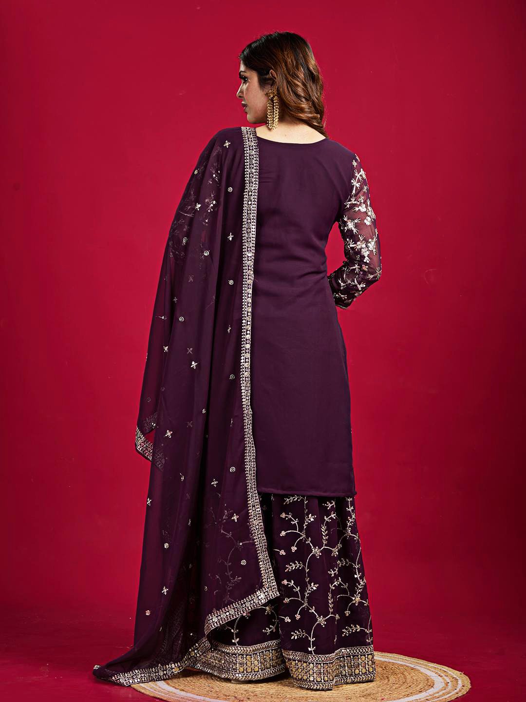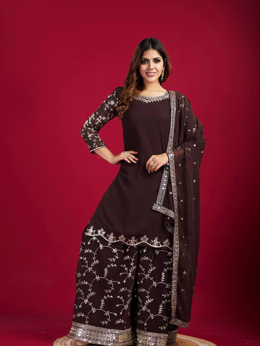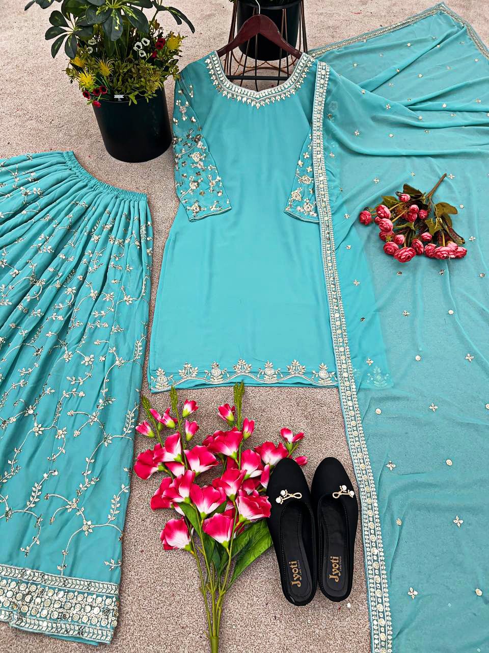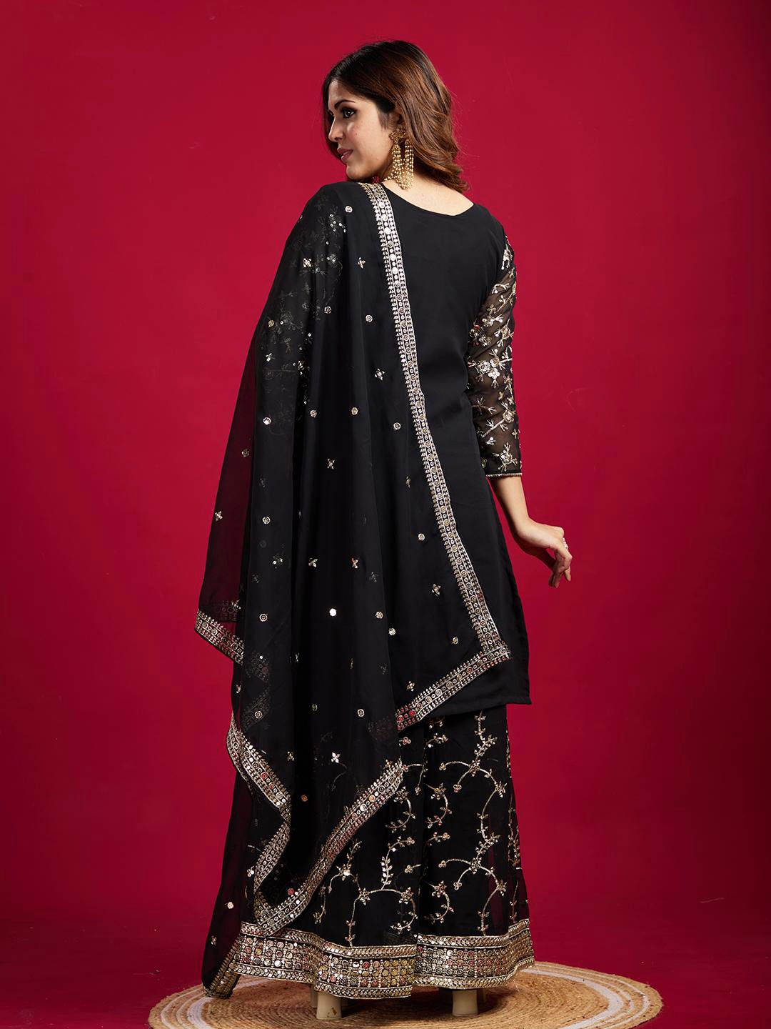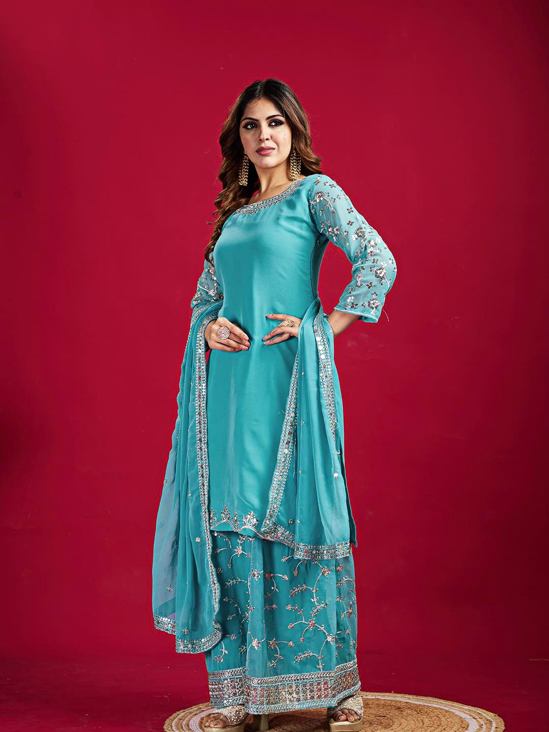 Plazzo Fabrics :Heavy Faux Georgette With 5mm Embroidery Sequence With Fully Flair