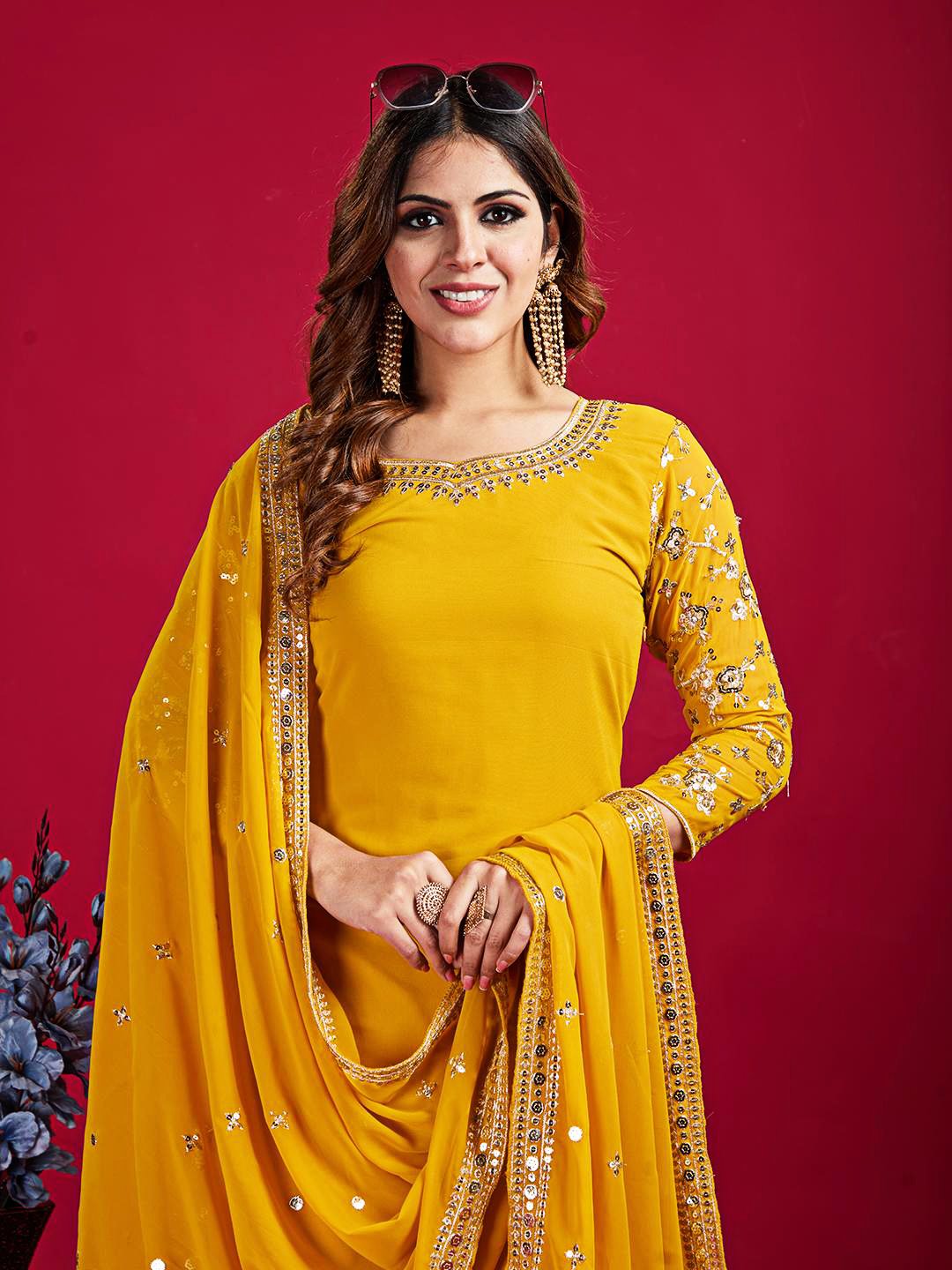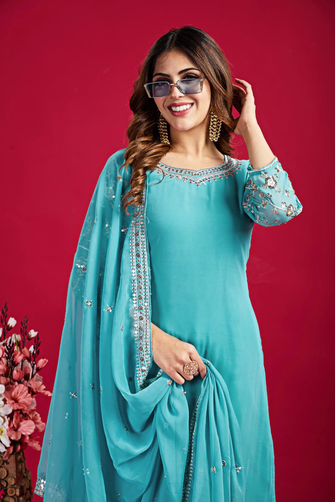 Top Fabric :Heavy Faux Georgette With 5mm Embroidery Sequence Work With Full Sleeve