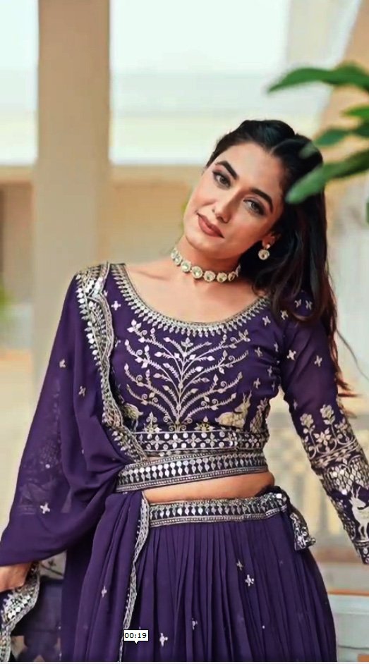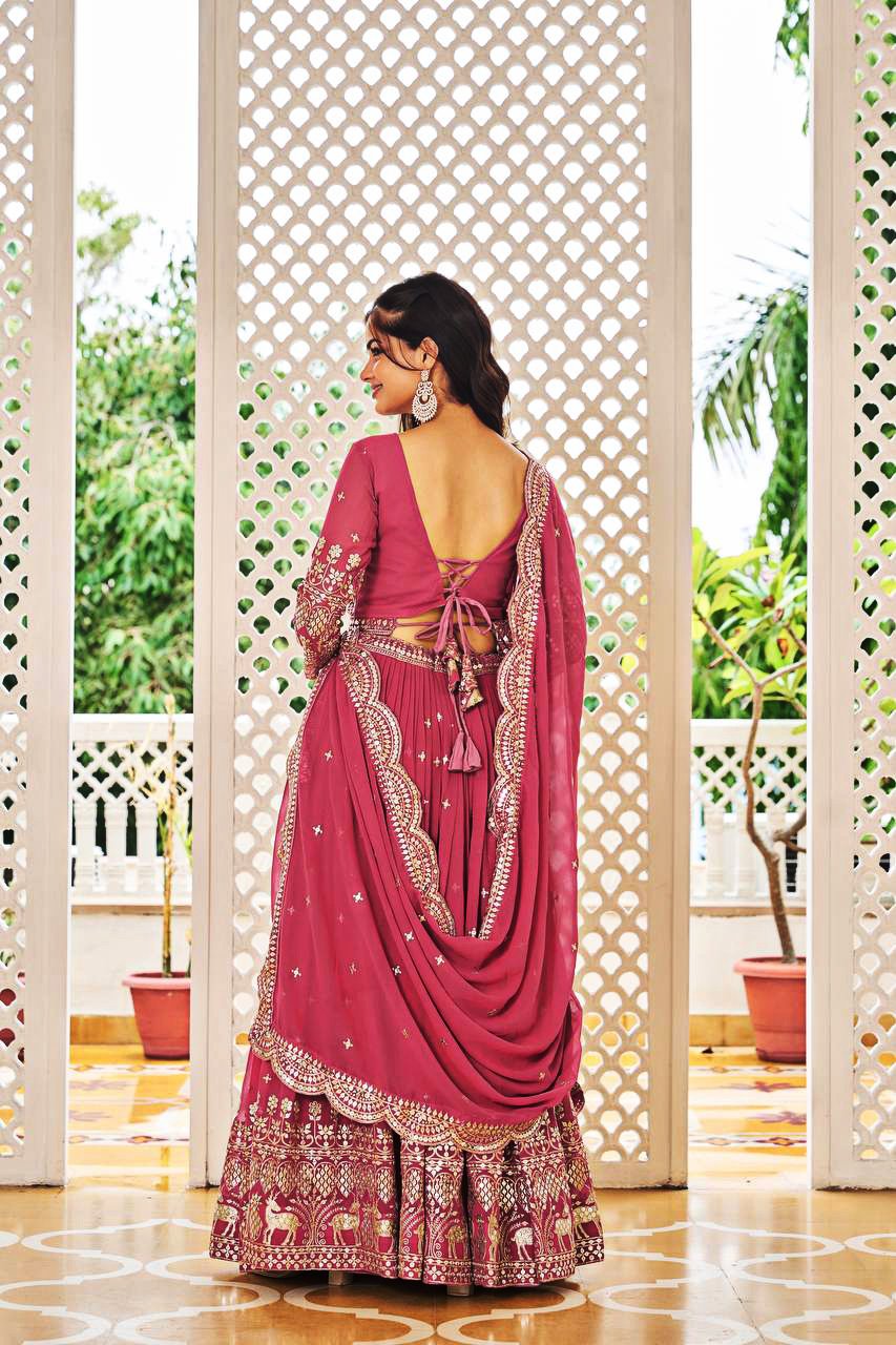 Luxurious embroidered georgette lehenga set with dupatta — perfect for festive glamour.