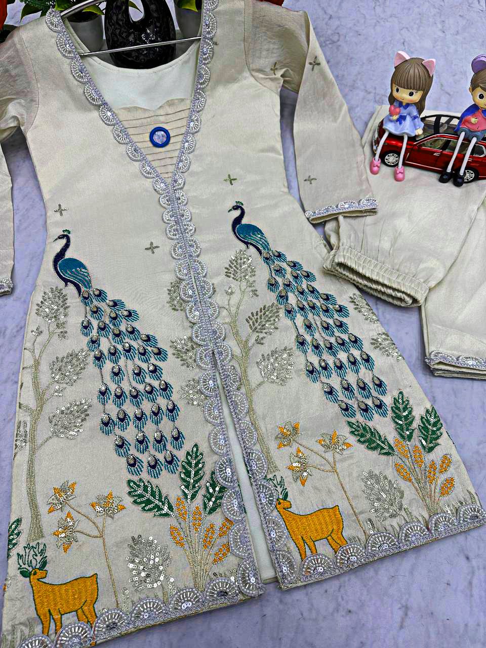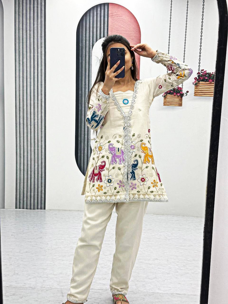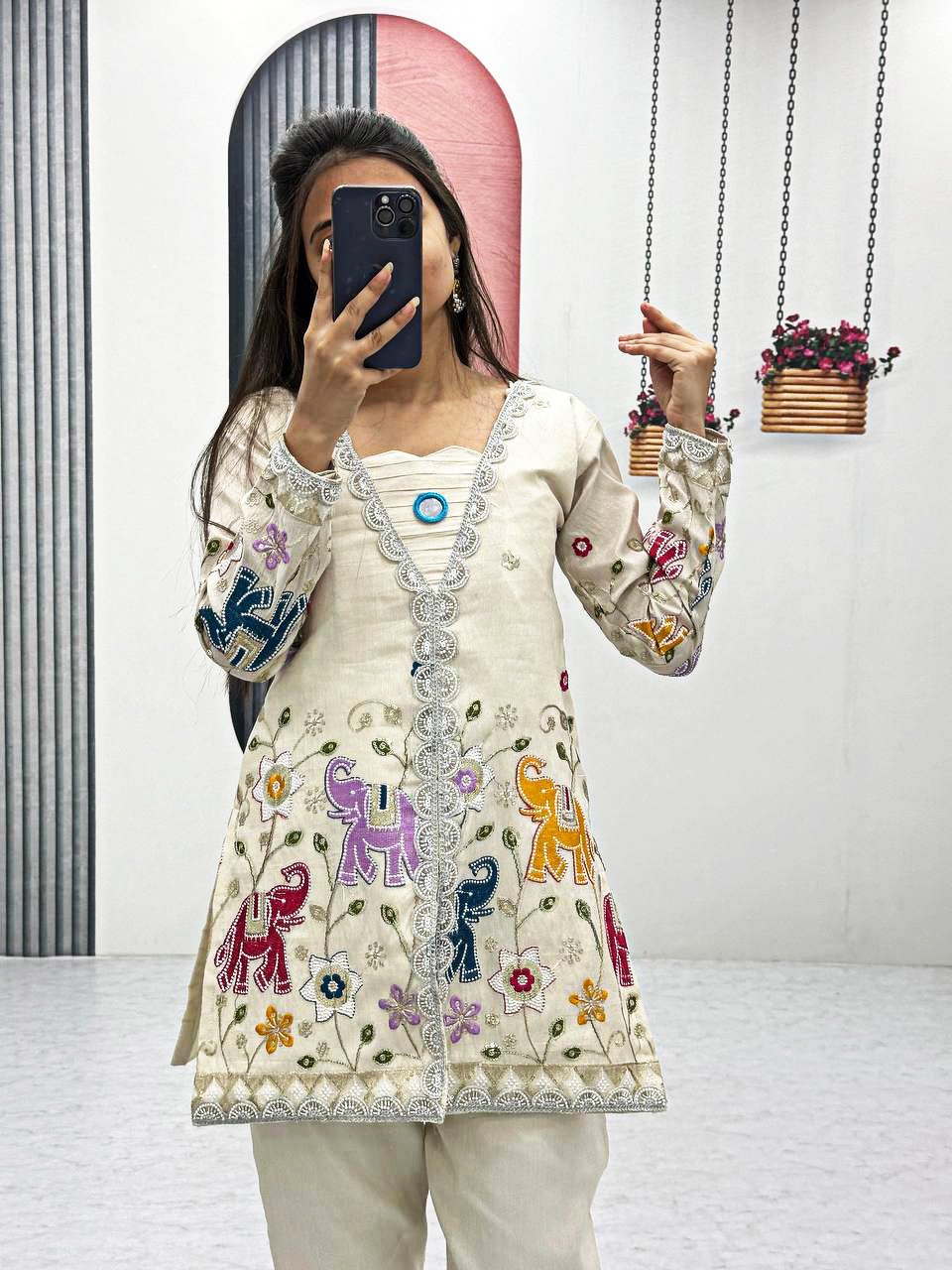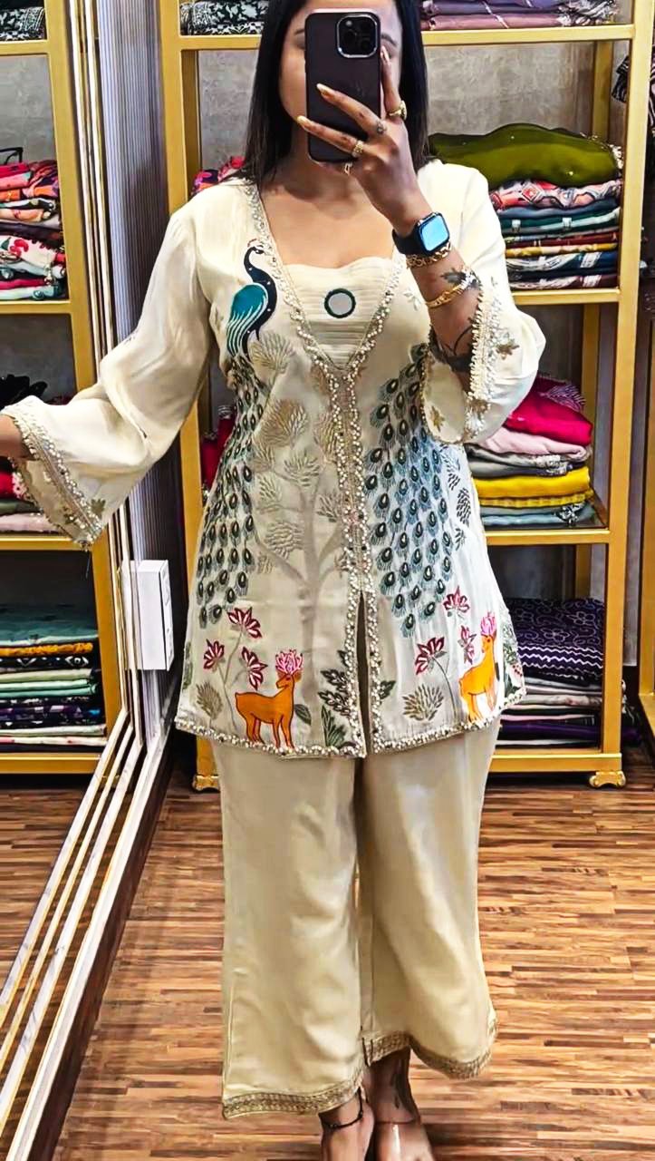 Kurta With Mirror Work And Beautiful Embroidery All Over,Paired Up With Cotton Plazzo Pants