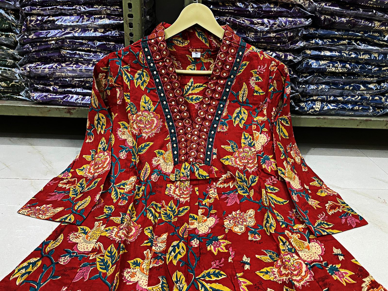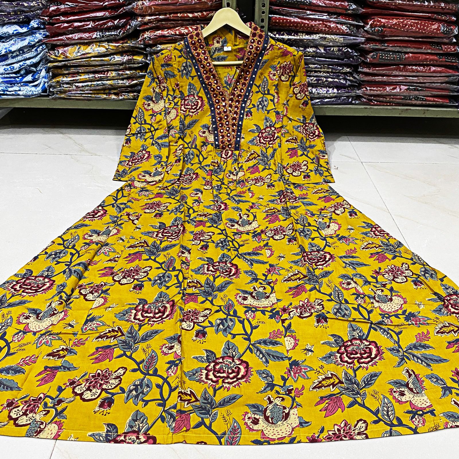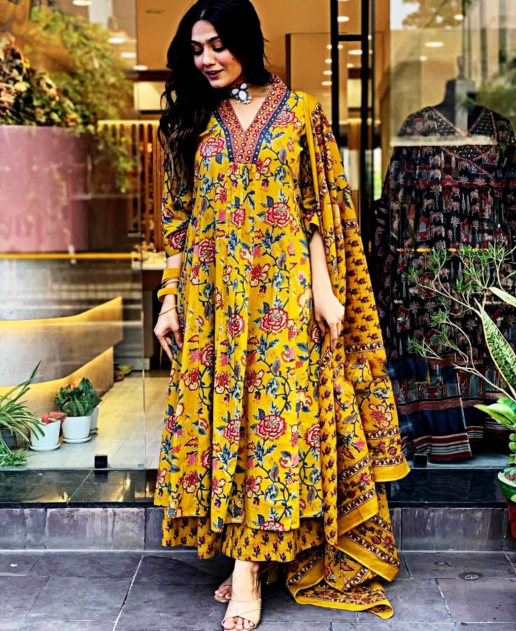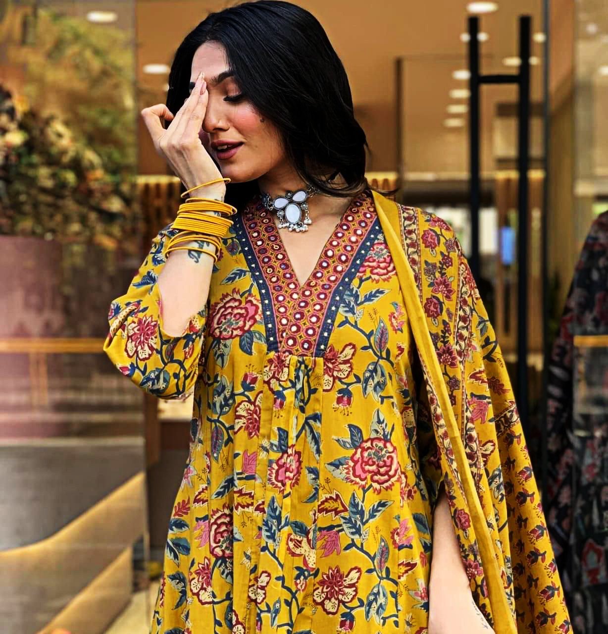 New stylish and affordable beautiful look straight alia cut set with beautiful print and fabric pure Cotton💃💃