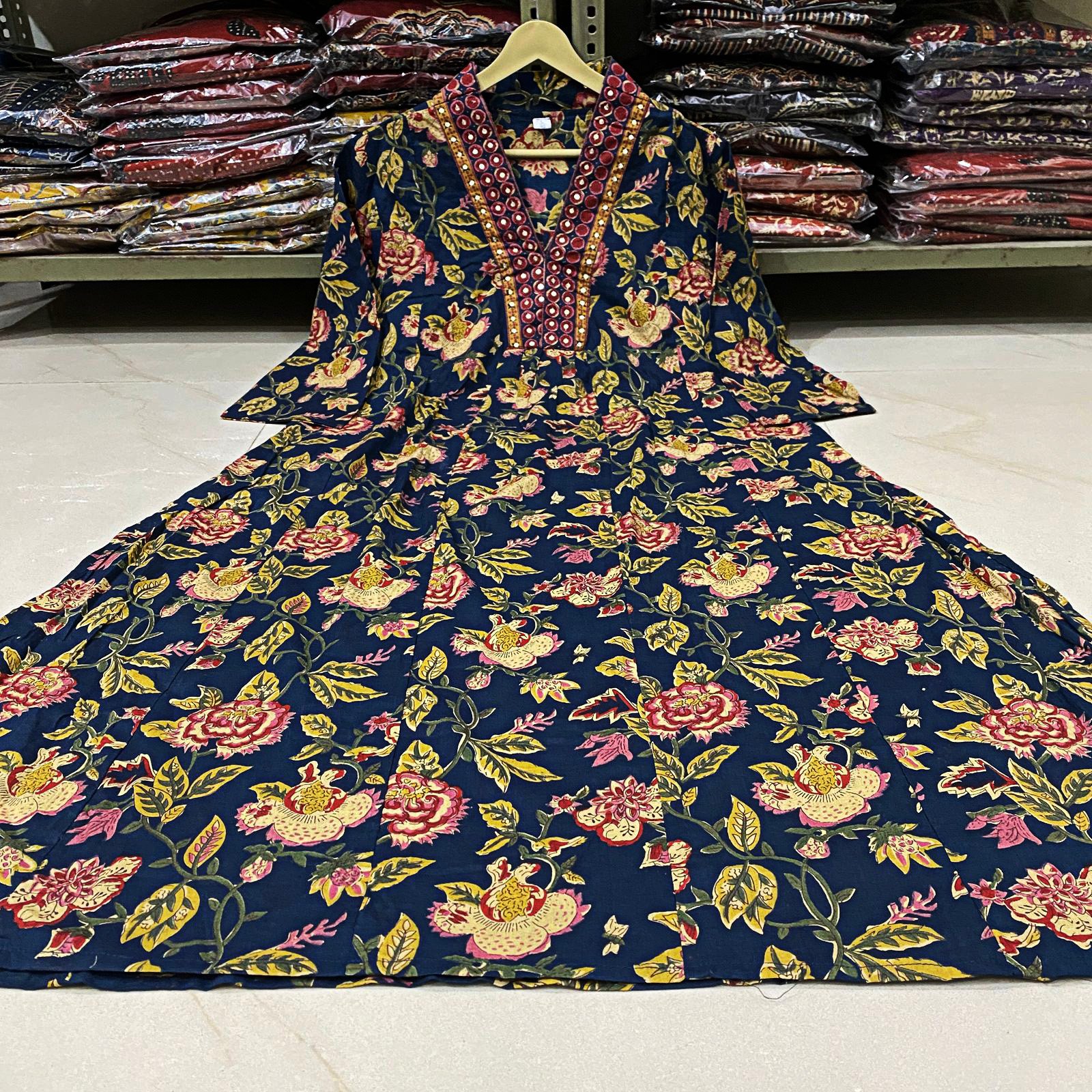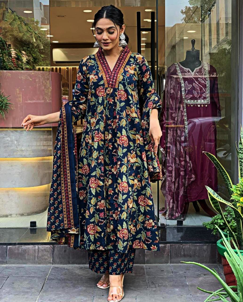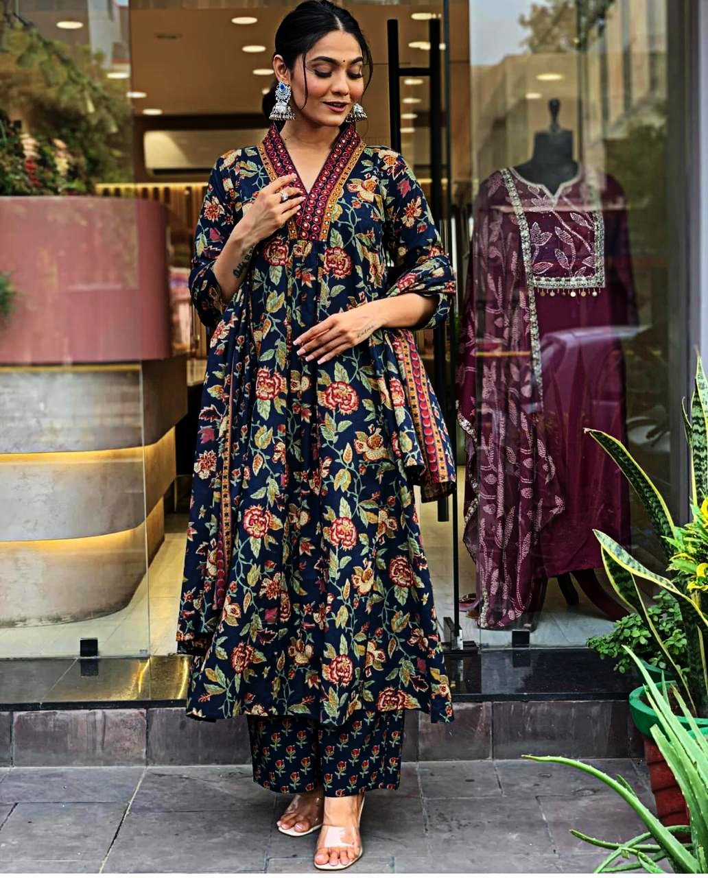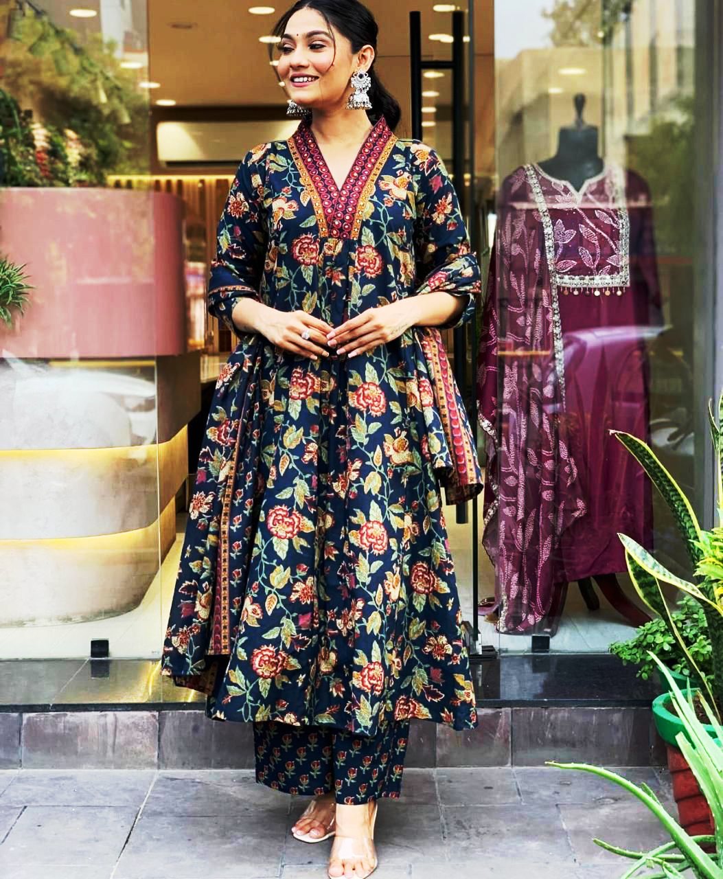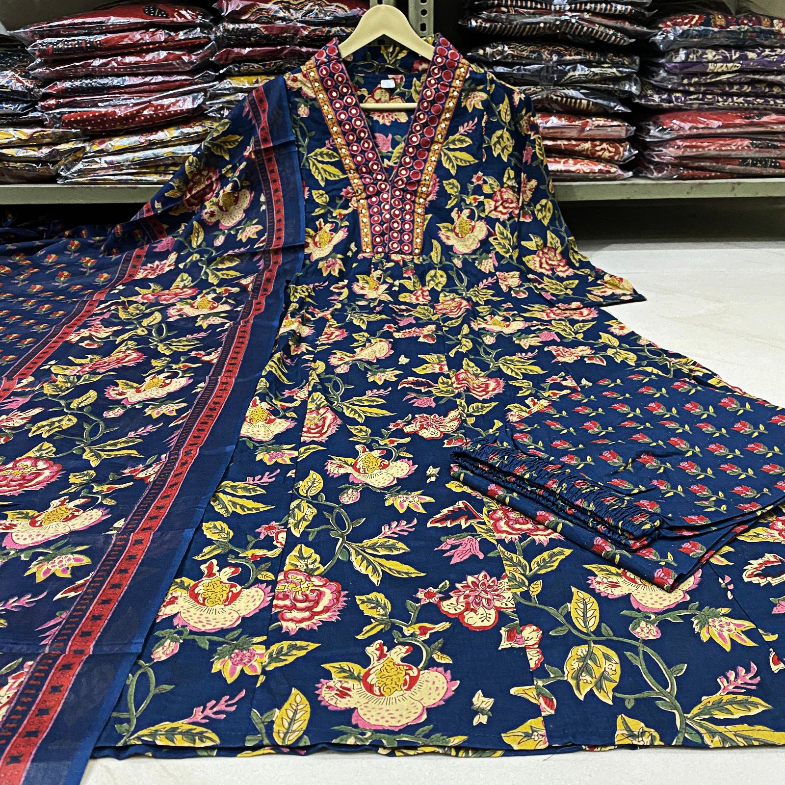 New stylish and affordable beautiful look straight alia cut set with beautiful print and fabric pure Cotton