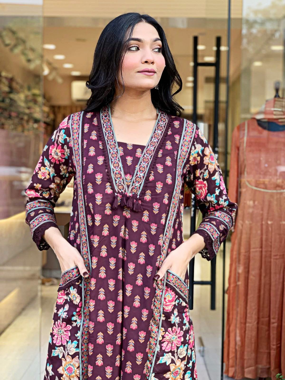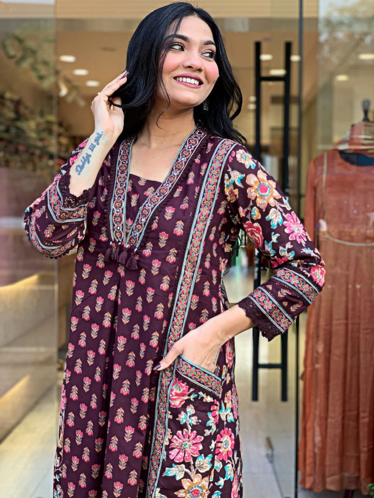 Premium Cotton Anarkali Angrakha Kurti Set with Malmal Dupatta