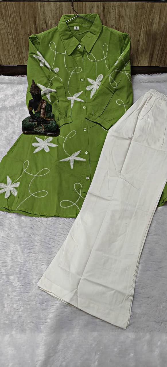 Pure cotton 60*60 top With bell bottom poplin pant