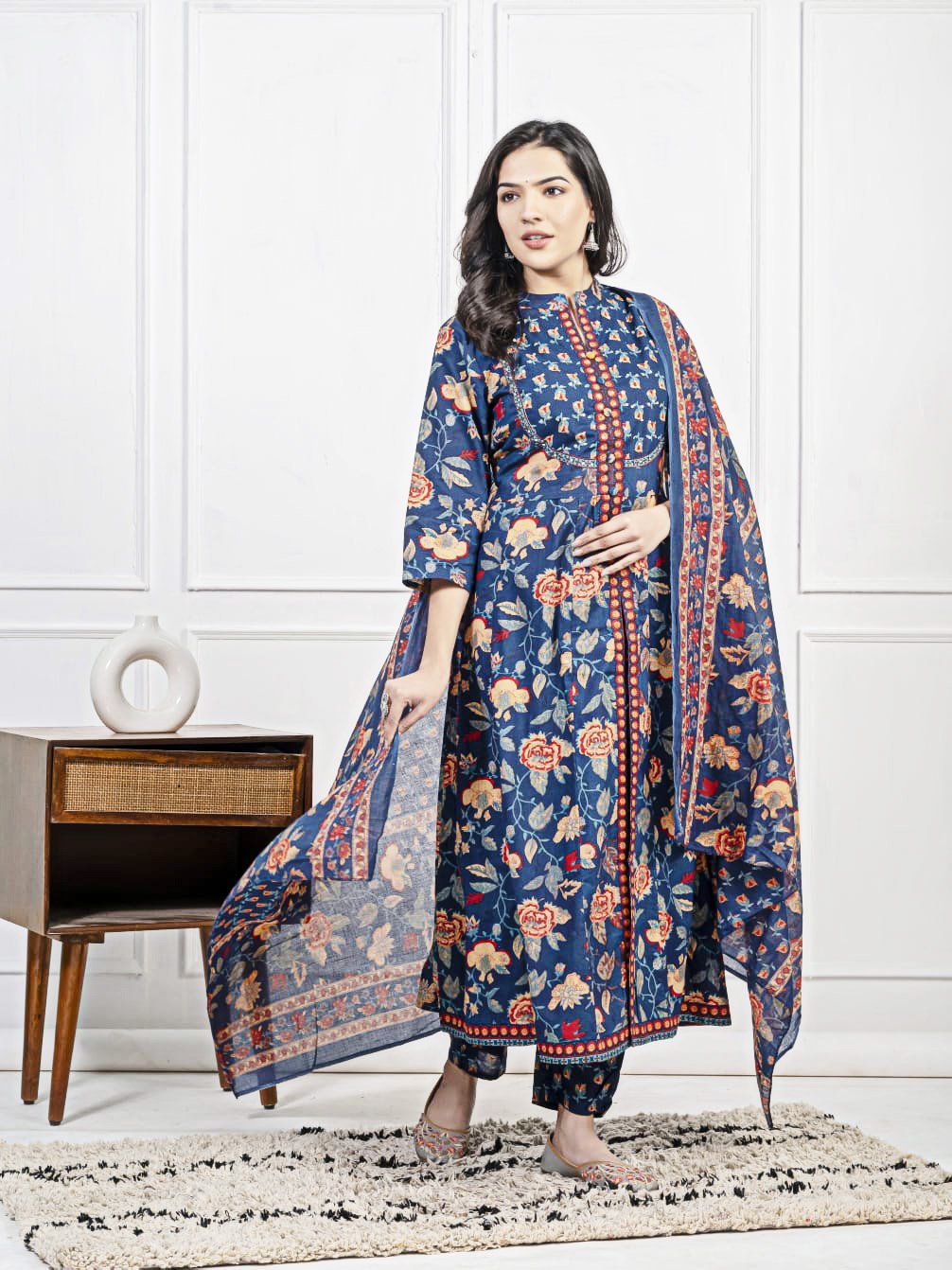 Pure Cotton Front Open Kurta Set for Women Pant & Dupatta
