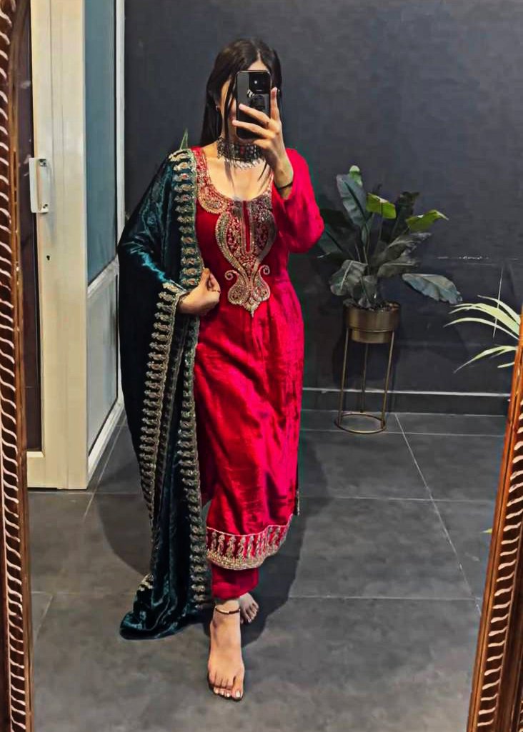 👗 Dupatta Fabric : Viscose Velvet with Embroidery Sequence lace border